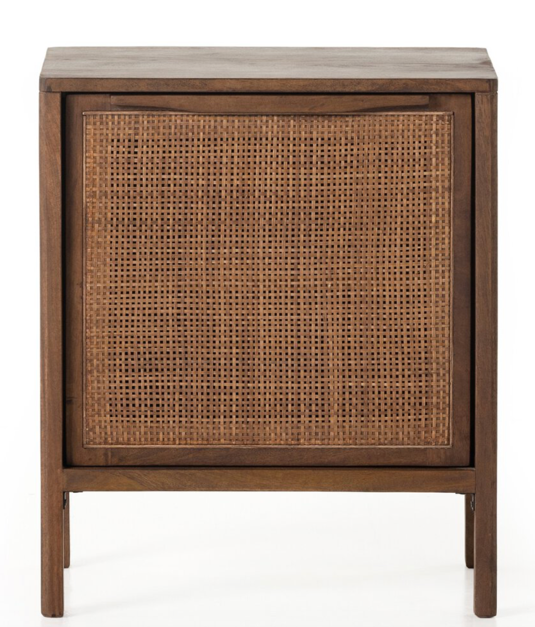 Brown-washed mango encases inset woven cane, for a light, textural look with monochromatic vibes.